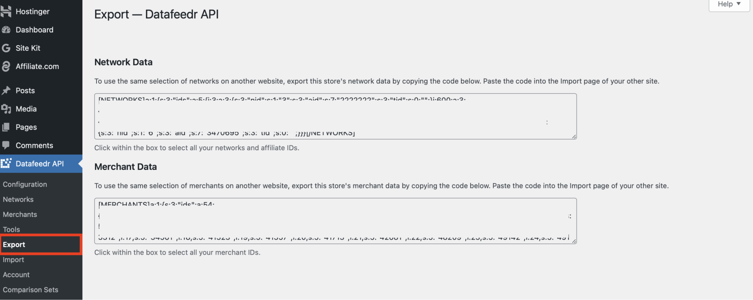 If you’re running Datafeedr on multiple sites, you can easily export your selected networks and merchants to another site.
