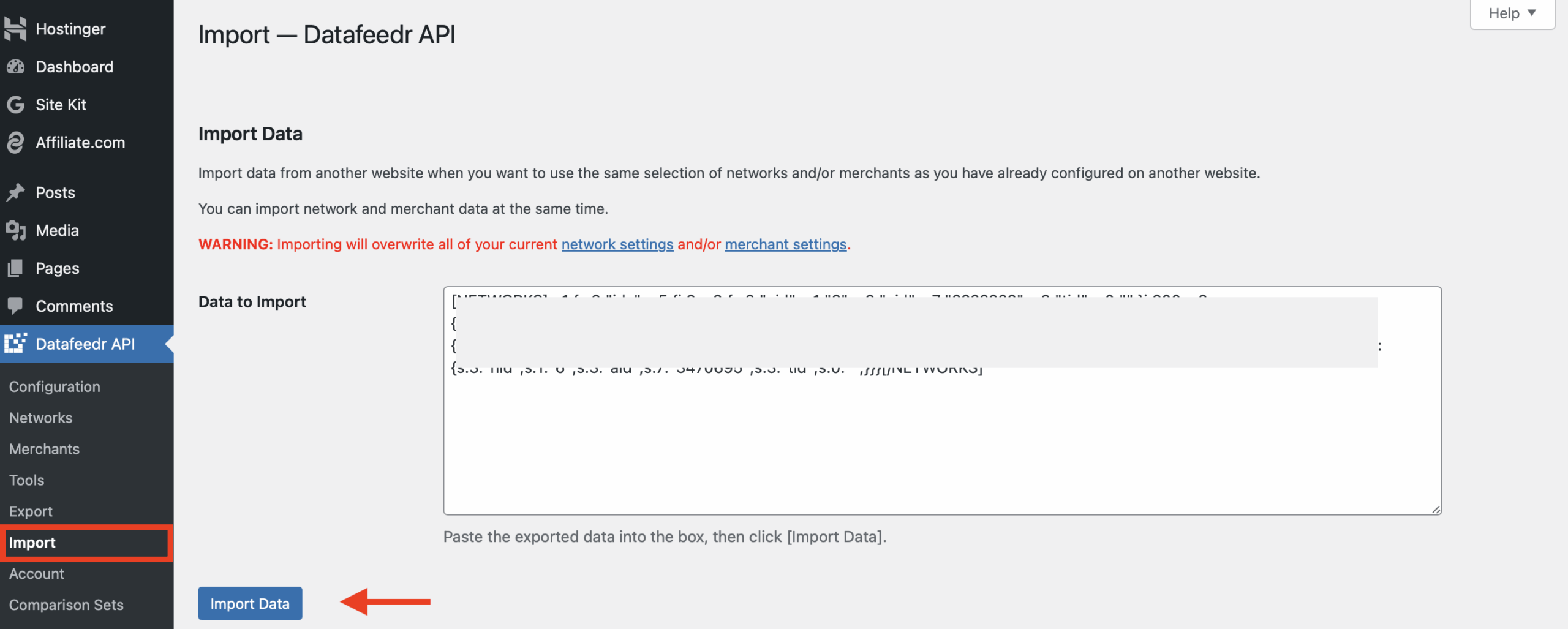 Go to Datafeedr API > Import for the site in which you want to use the selected networks and merchants.