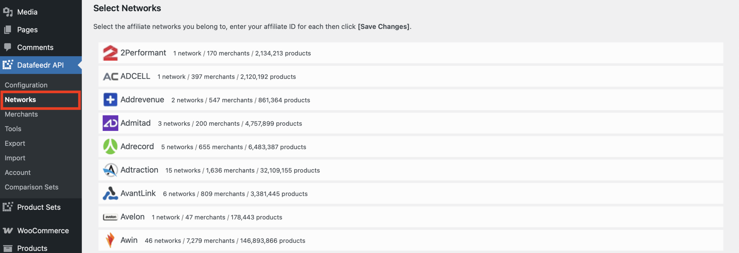Once completed, this will enable you to start adding products from these affiliate networks and merchants on your site.
